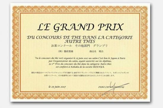 【グランプリ】「セボン・ル・ジャポン2017 日本茶コンクール」 にて グランプリを受賞しました。