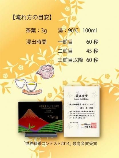 【最高金賞】「世界緑茶コンテスト2014」 にて 最高金賞を受賞しました。