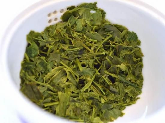 茶葉の資質を生かすために蒸し度は抑え気味の「正統蒸し製法」ゆえ、黒い軸の目立つ端正なルックスです。